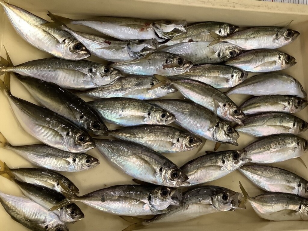 定番のサビキ釣りではサイズ、数ともに安定しています。日によって釣れるサイズは変わりますが、25cm級の良型アジが連発する日もあります。湾の入り口エリアから湾奥エリアまで満遍なく釣果が出ており、魚影は濃いです。