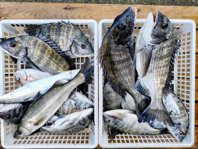 グレはフカセ釣りで型、数ともに十分で、35cmオーバー頭によい人50尾超、1人2ケタはほぼ確実です。