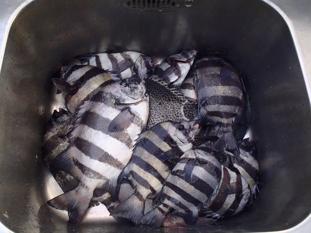 このところレンコダイがメインで、28~33cmを1人6~15尾。ほかにチダイ、アオハタ、カワハギなどがまじっていました。