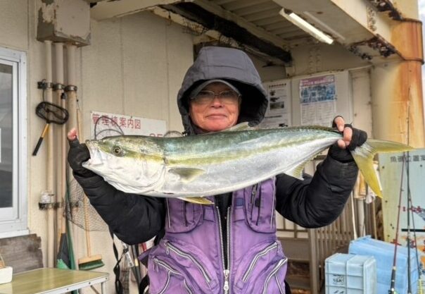 四国中央市でブリ80cm頭に3尾、ハマチ70cm頭に3尾。