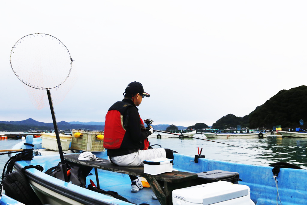 カセとはエンジンが付いていない、ボートのことで、そのカセをアンカーや養殖筏に着けて楽しむ釣りです。