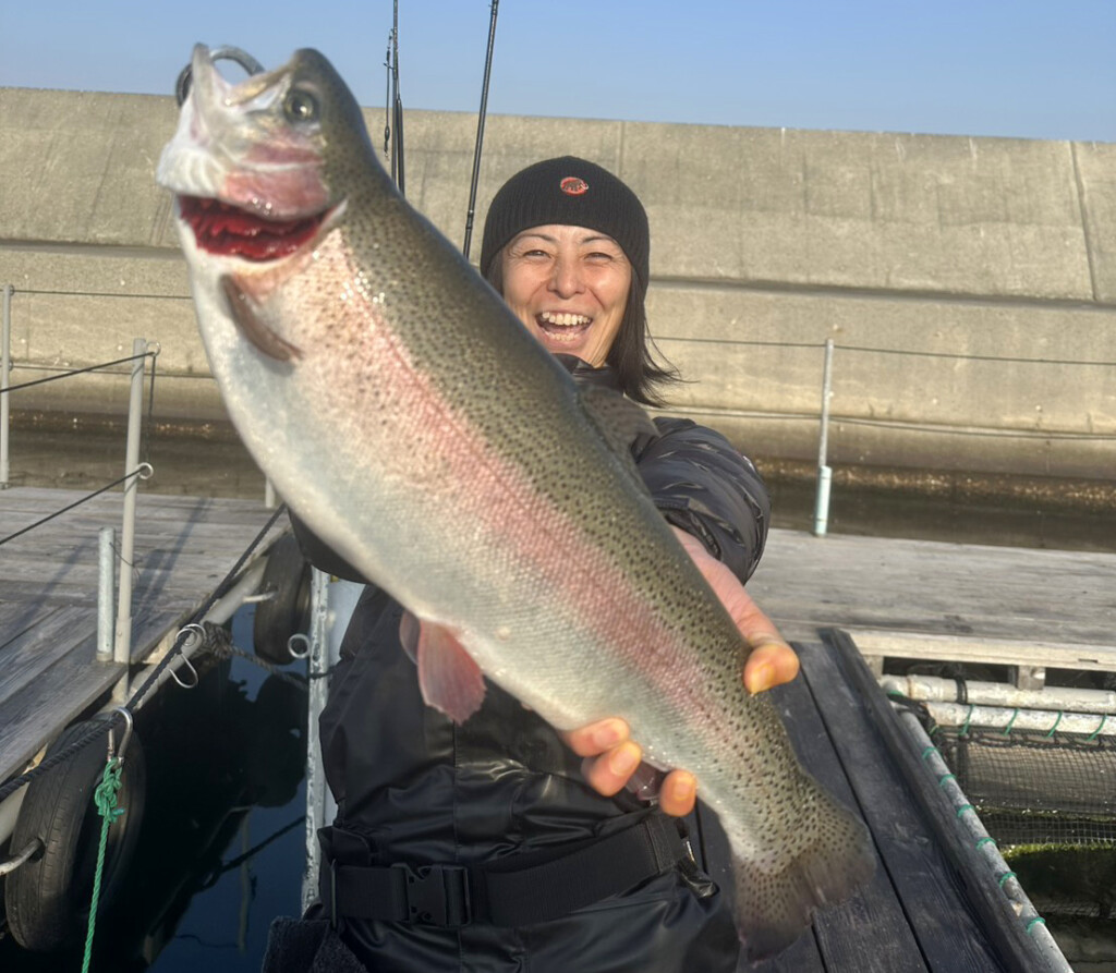 実はこの日、「関西つり堀KINGバトル」2025年王者の梶谷幸輝さんにレクチャーしていただき、人生で初めてキャッチしたのですが、魚種は「みらいサーモン」というブランド魚。