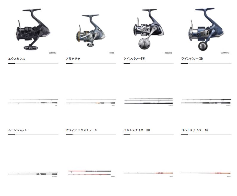 気になるカテゴリーをクリックすると、その釣種の関連製品の一覧が表示されます。