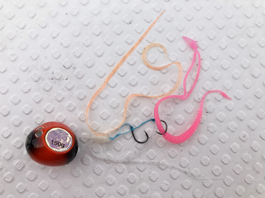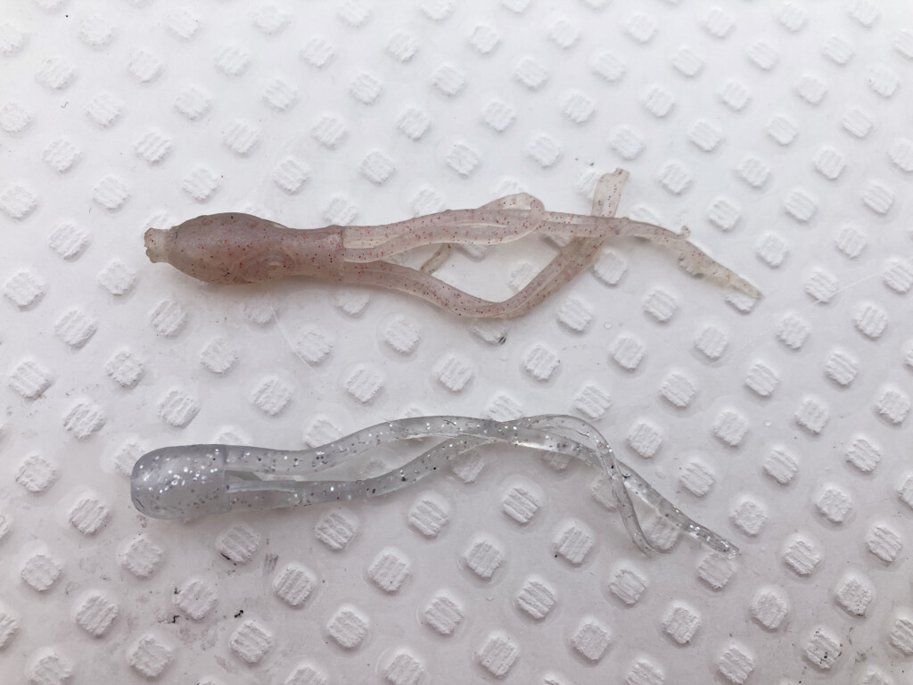 細めのワームをフックに装着して、アピールをするのも効果的。