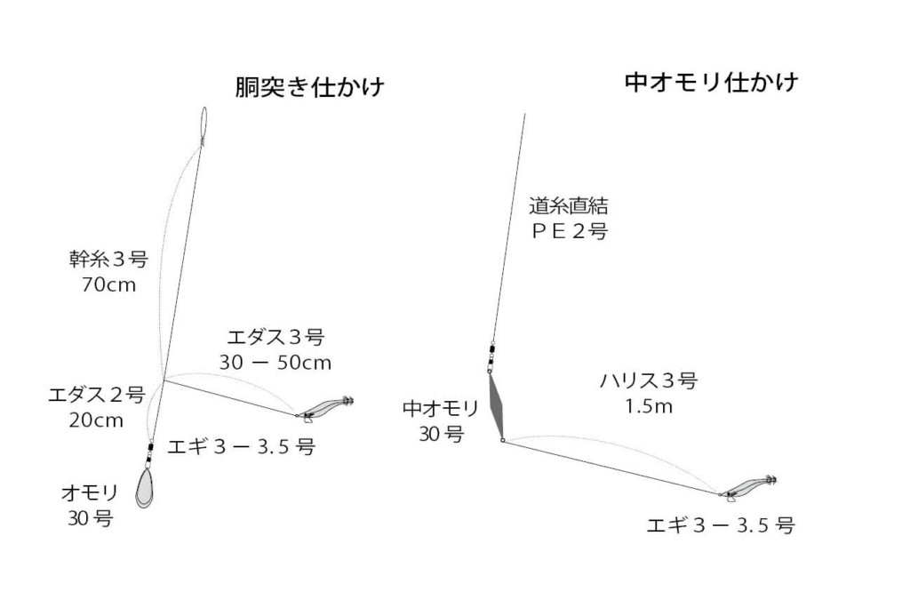 胴突き仕かけのエダにエギを付けた仕かけ。