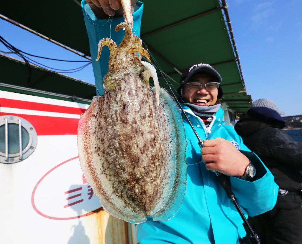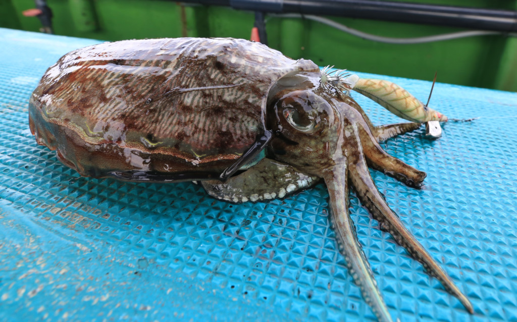 コウイカは甲(貝殻)を持つ種類のイカで、海底付近に生息。見た目はミステリアスながら、その食味は絶品で、しっかりとした歯応えと、ほどよい甘みが特長です。また、タナが底と決まっているので、ビギナーでも釣り方さえマスターすれば、比較的釣果が出やすいので、近年人気の釣りです。