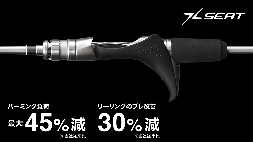 手の平とグリップの接触面が大きくなるため、手の平全体で包み込むようにホールドできるので、リーリング時のブレを30%低減(※同社従来比)。そして、パーミング時の負荷も最大45%減(※同社従来比)と、釣り人に優しいグリップ設計。