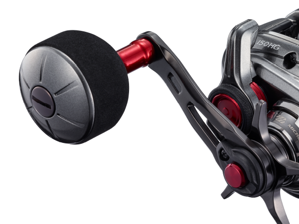 この150番サイズは、ドテラタイラバと呼ばれる外海の深場を攻める釣りに対応するスペックを搭載。水圧のかかるディープをスピーディかつ強力にサーチするため60mmロングハンドル+丸型ノブを装備。
