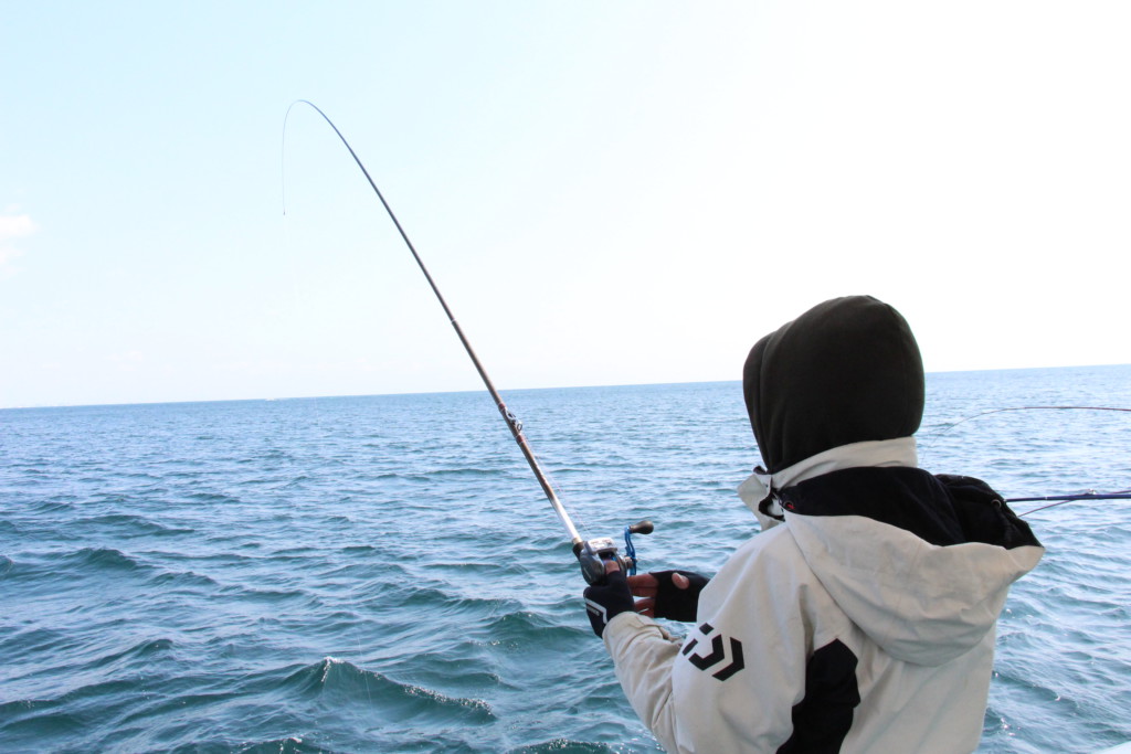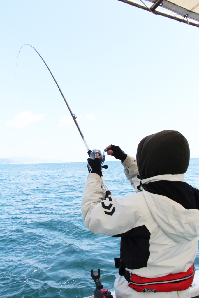 「2、3回引き込めば、ゆっくり巻き始めて回収」と船長や中乗りさんが言うように、いつまでも待つのではなく、掛かった魚を確実に取り込んで、次の1尾を狙うことも数伸ばすコツです。
