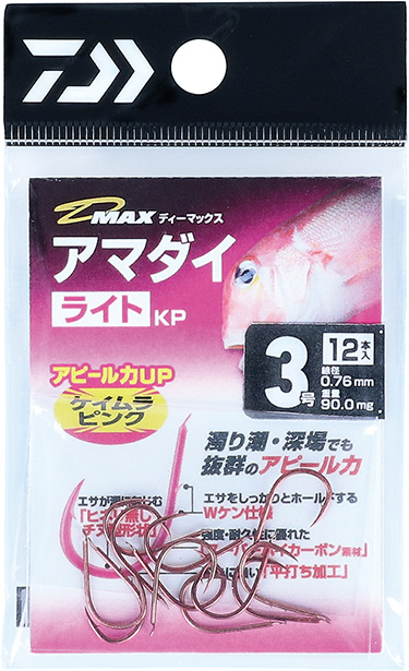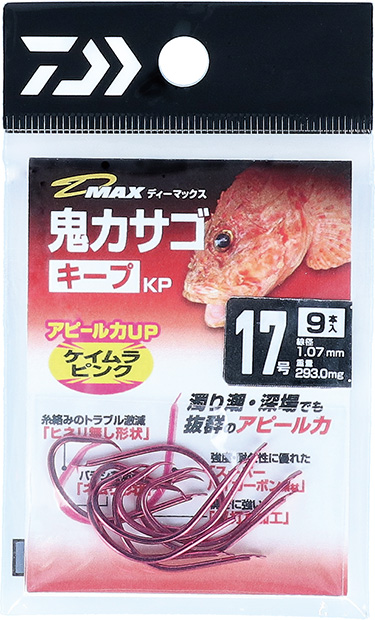 以上が今春、ダイワから登場したKP仕様の専用針です。今期の針のトレンドとなること請け合いのケイムラピンクの針で、オニカサゴ、アカムツ、マダイ、アマダイなど、狙いのターゲットを攻略しましょう。