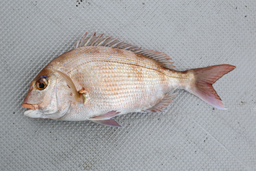 4月22日沖田氏マダイ55cmとツバス1尾。