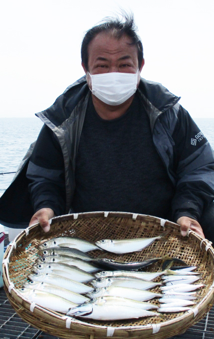 4月24日溜前氏アジ24~27cm15尾、全体でアジ45尾とイワシ8~12cm50尾。