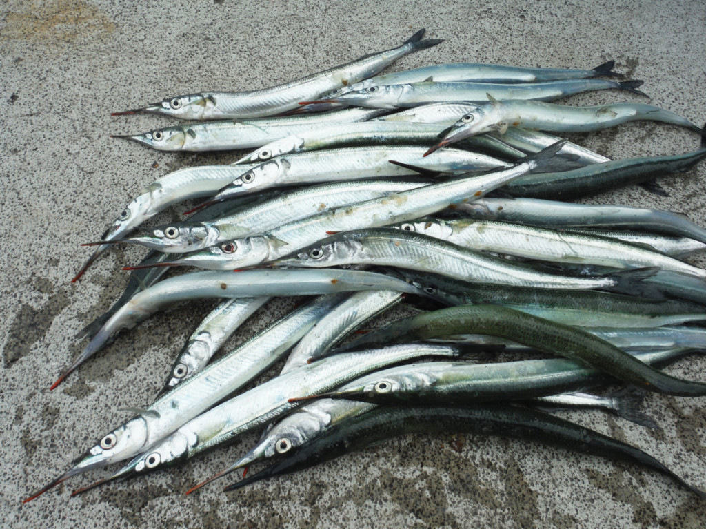 大島でサヨリ37cm頭に12尾をサヨリ仕かけで。