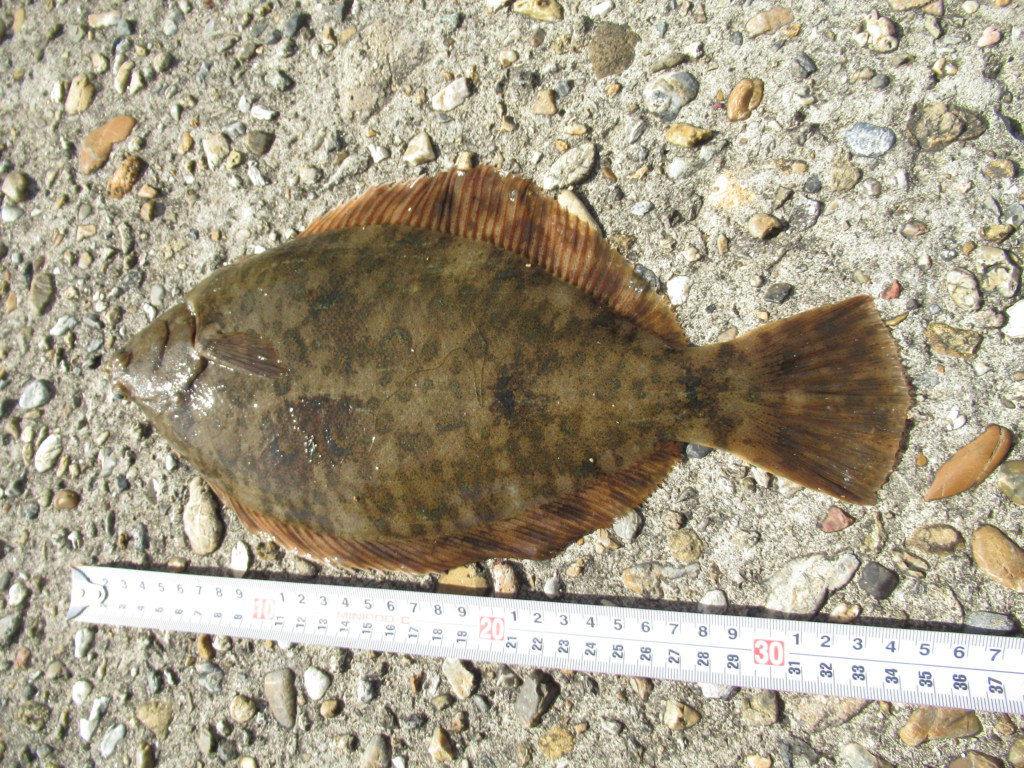 中島でカレイ33cm頭に2尾を投げ釣りで。