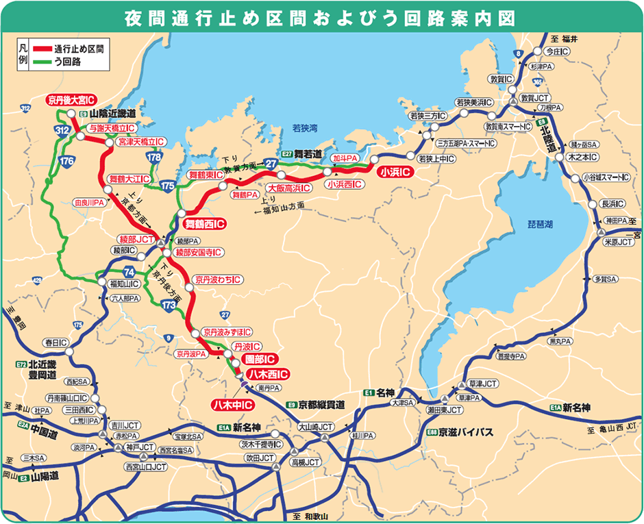 ◆区間:京都縦貫自動車道の園部インタ~山陰近畿自動車道の京丹後大宮インタの上下線(約68.5km)