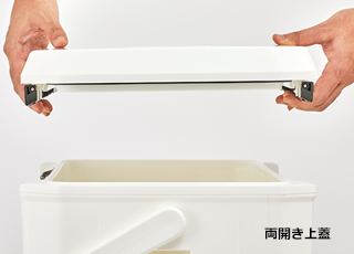 ▲取り外し可能で、お手入れも簡単な両開き上フタ