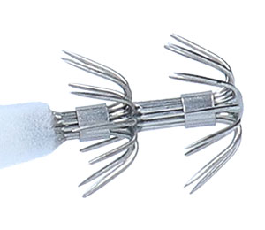 カンナは、日本製素材の笠針を段差で配置したこだわりのカンナで、掛かりもバッチリ。そして、掛かったイカはバラさないような設計になっています。