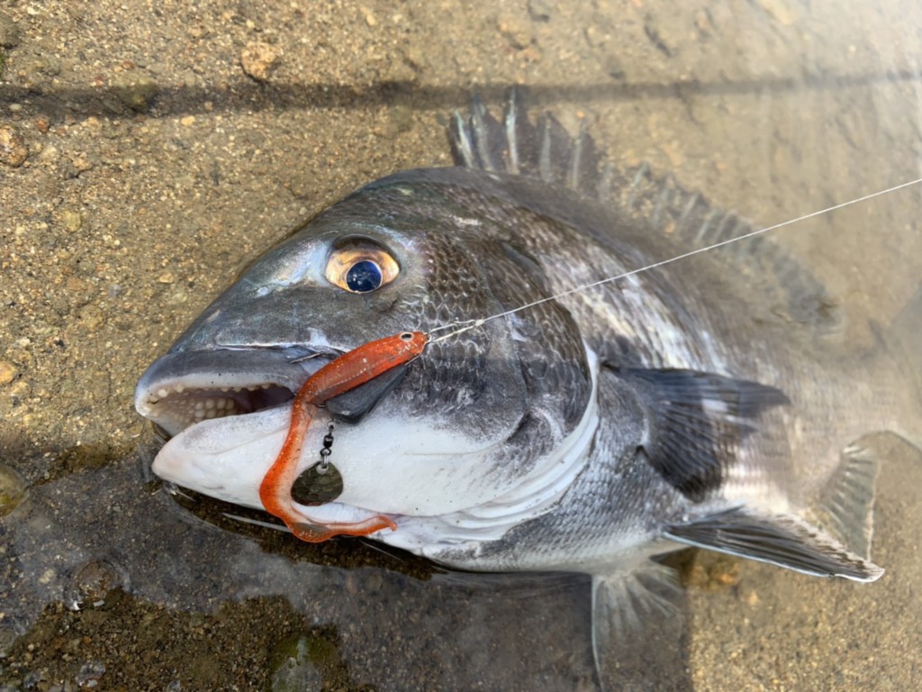 熊野川中流で2インチ程度のワームで40cmのチヌ。