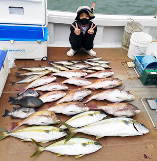 マダイもよくまじって、皆さん笑顔の記念撮影となりました。