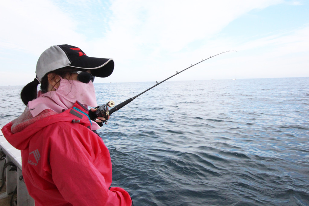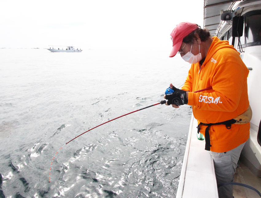 竿の角度は、潮や船の流れによって前方へ払い出したり、船下へ入ったりするので変わってきますが、「穂先は水平よりも上向きで構える」ことを意識すれば、誰にでも簡単にできると思います。