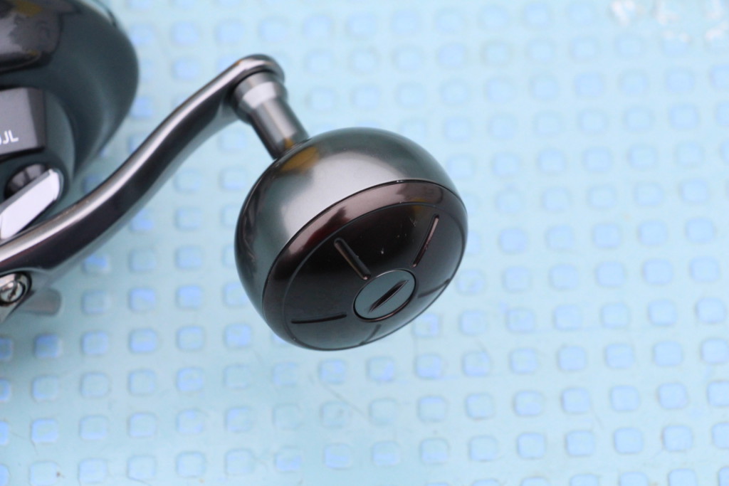 ハンドルは、握りやすくパワフルに巻き取れるアルミラウンドノブが標準装備。