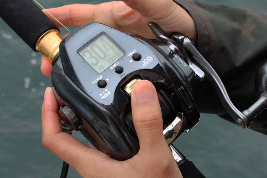 下の指示ダナまで仕かけを下ろして、素早く上の指示ダナまで巻き上げる落とし込みでは、瞬時に数字が見て分かると、より一層手返しが早くなり、ヒットチャンス増にもつながりますね。