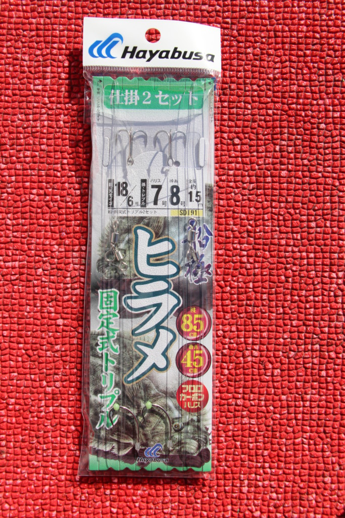 エサ付け一例。親バリを口掛け、孫バリ(トリプル)を腹掛け