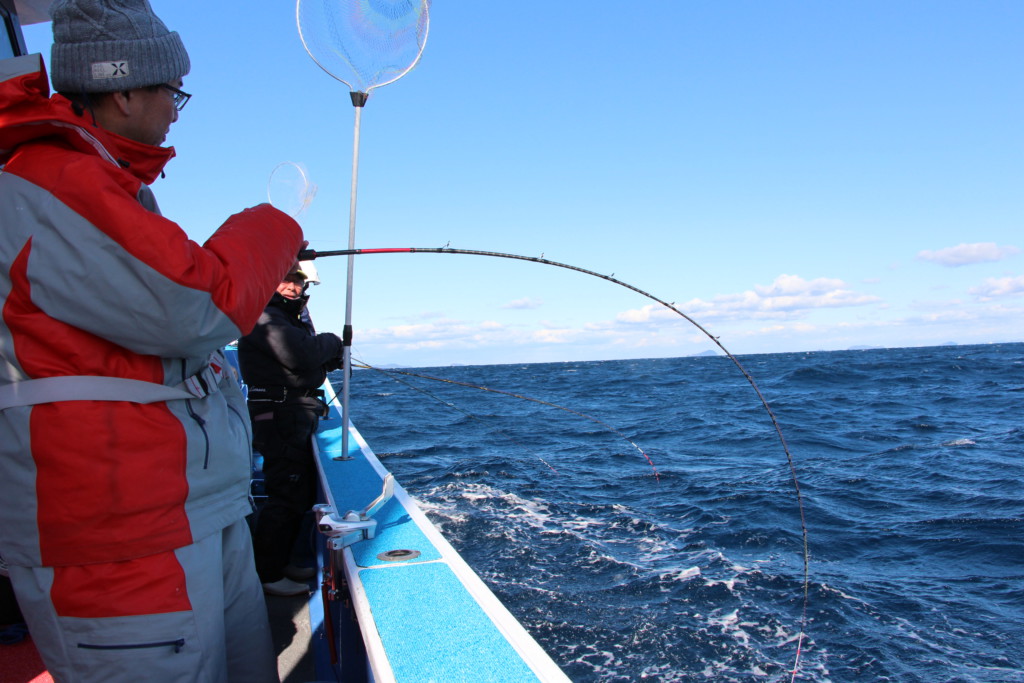 また、タモに入ったのを確認したら、すぐにリールのクラッチを切りましょう。クラッチが入ったままにすると、タモですくったヒラメを船上に上げた時などに竿に負荷が掛かってボキッ…なんてことになりかねませんからね。