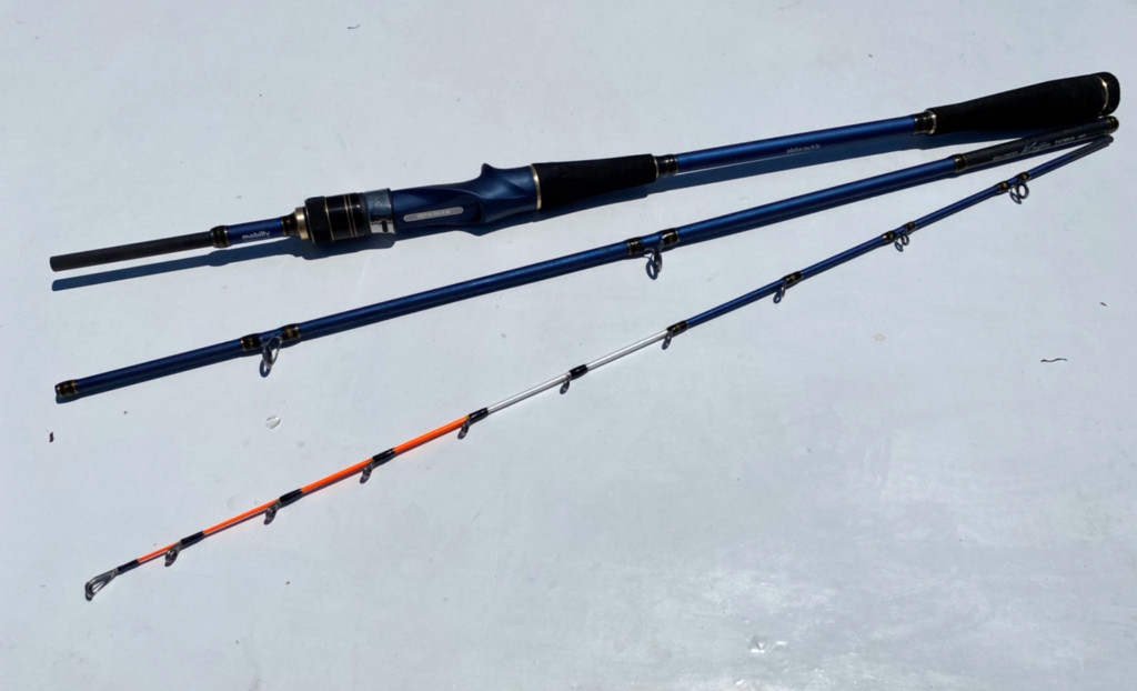 なおちんが使用した海人モバイリータチウオ。海人モバイリーシリーズの共通項は3ピースであること。また全5タイプ(タチウオ、湾フグ、ライトアジ、カワハギ、ライトゲーム)のモバイリーがあるが、すべて仕舞寸は66cm以下