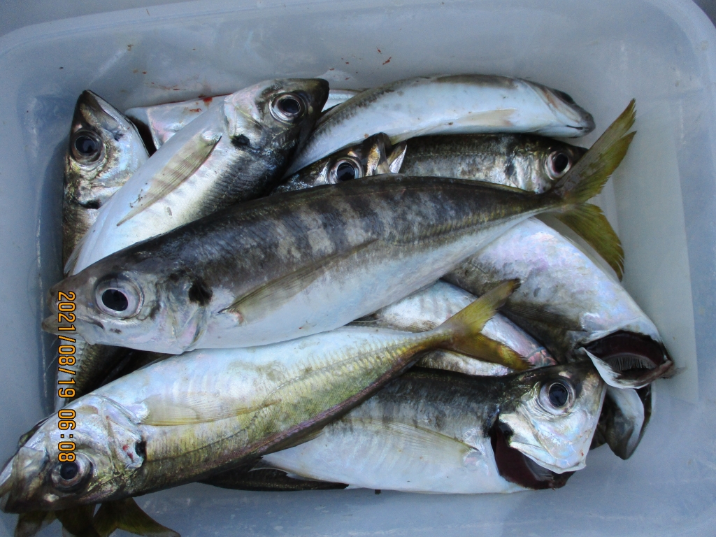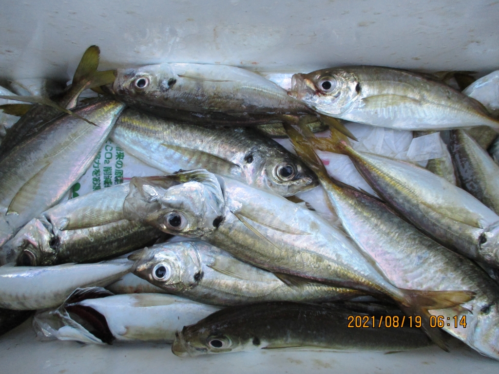 マアジが良型まじって好調に釣れている。