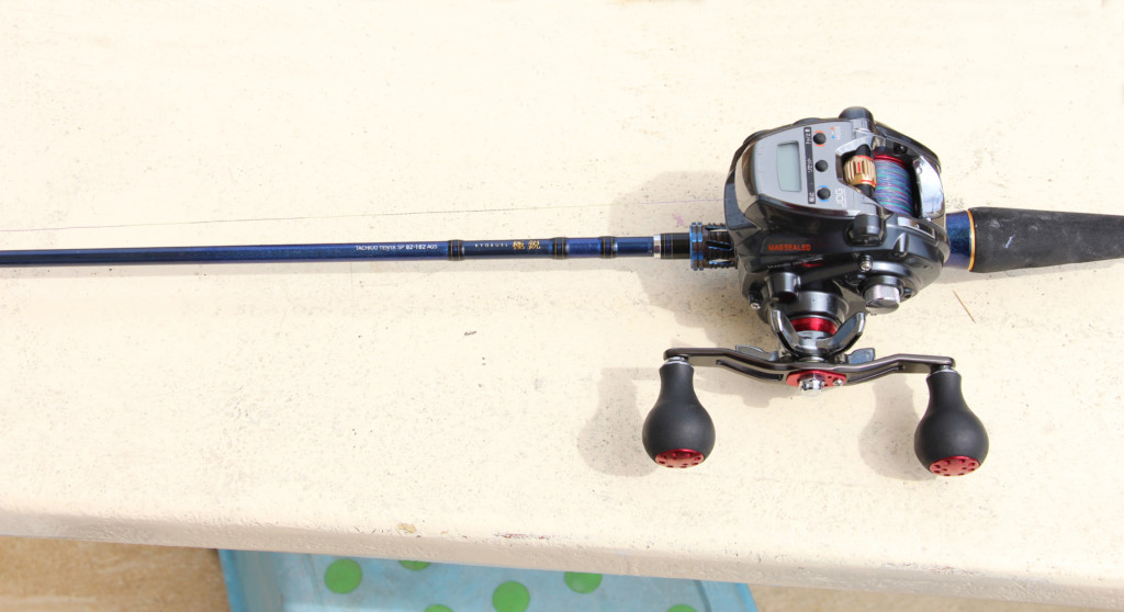 西村氏のタックルは、ダイワの「極鋭タチウオテンヤSP82-182AGS」と「シーボーグ200JL、同DH」。