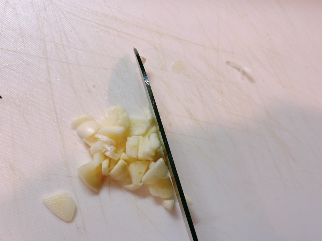 ニンニクはチューブでもよいのですが、風味にこだわるなら生のニンニクをみじん切りにしたものがオススメ!