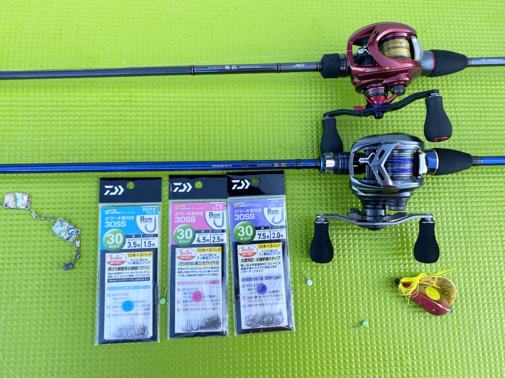 この時期は大型カワハギ中心のため、針も大きめを選択。3本針の上2本はパワースピード7.5、下針はネオフック4.5(どちらもハリス8cm)で終日、釣りを通しました。