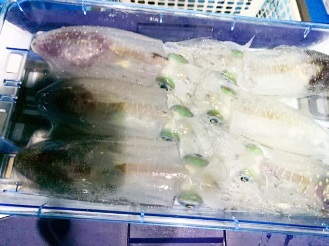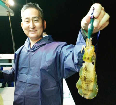 また、「釣果アップの秘訣は、エギを交換していくこと。同じエギで狙うと乗りが悪くなります」とは船長談。エギは2.0号〜3.0号で、エギの自重がノーマルから50gまでになるようにシンカーも揃えてくださいとのこと。