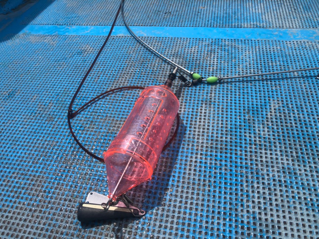 潮の速さなどを考慮して釣り方を選びますが、基本的に朝イチはエサを足元に撒き、魚を寄せるために天ビンズボをして、その後、潮がちょうどよい速さで流れるなら、竿をもう1本出して完全フカセで狙うのがオススメです。