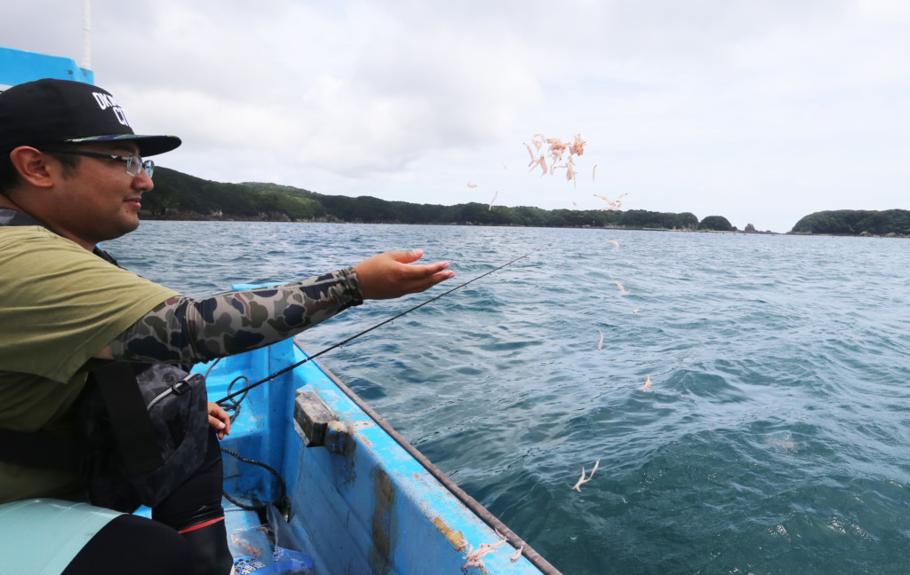 ②5m毎にマキエを撒きながら、ラインを出していく(ラインを流すだいたいの長さは事前に船長に聞いておく)