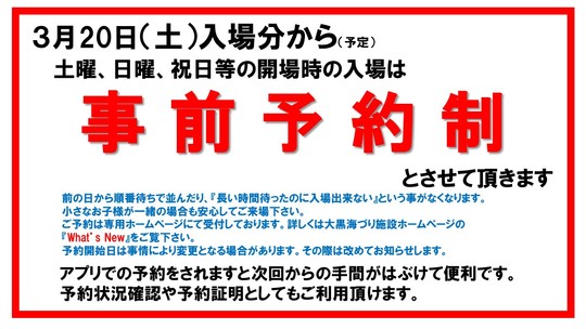 現在、土曜日・日曜日・祝日+繁忙期の期間で事前予約制となります。