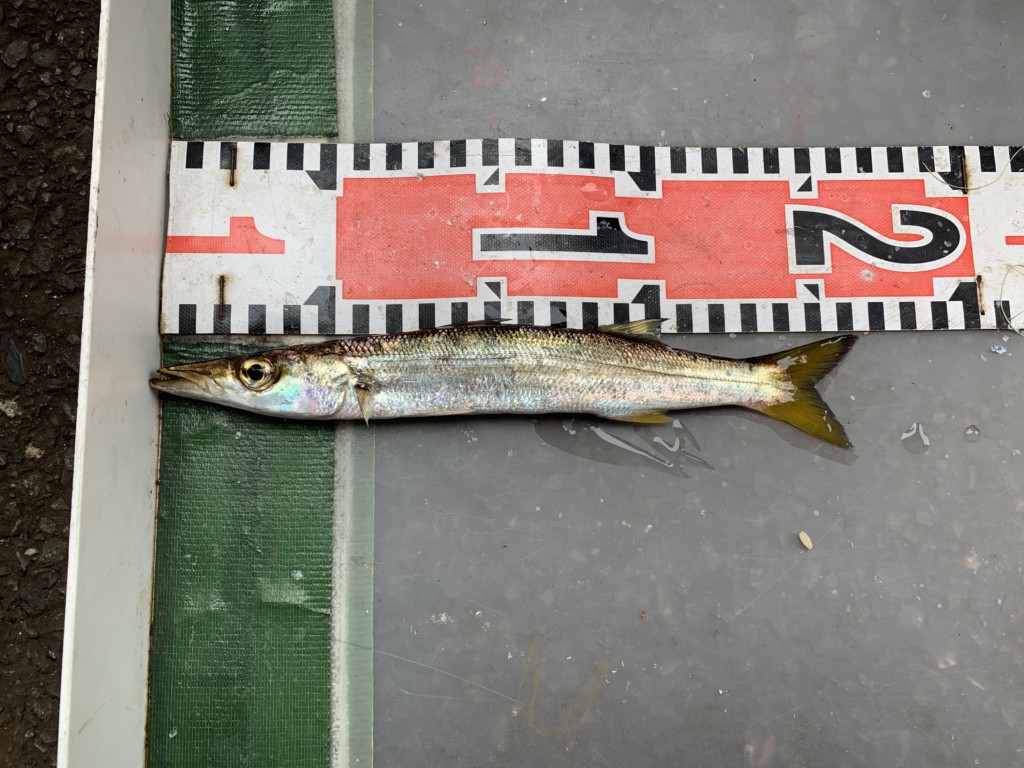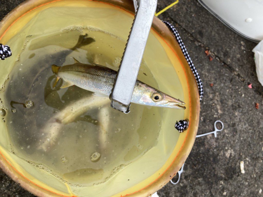 早朝、夕方はルアー、投げサビキでカマスやシマアジが釣れています。