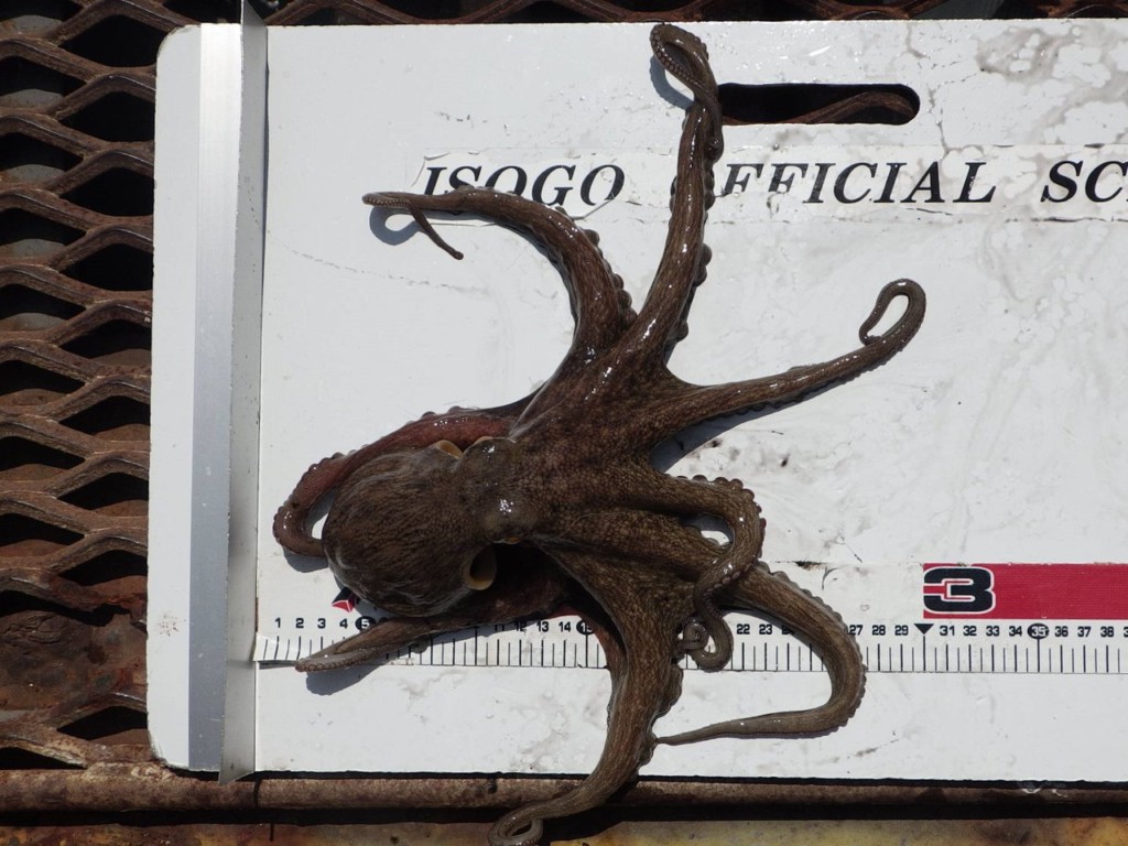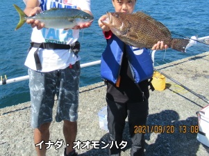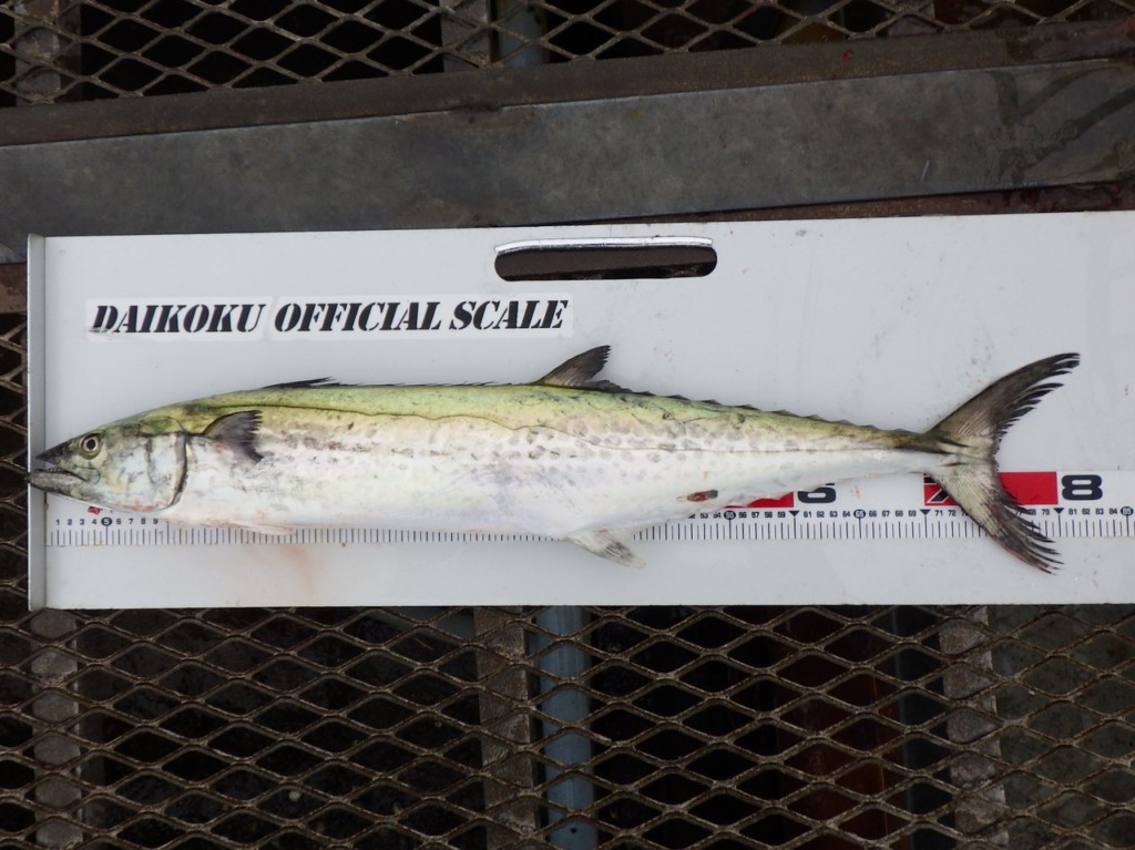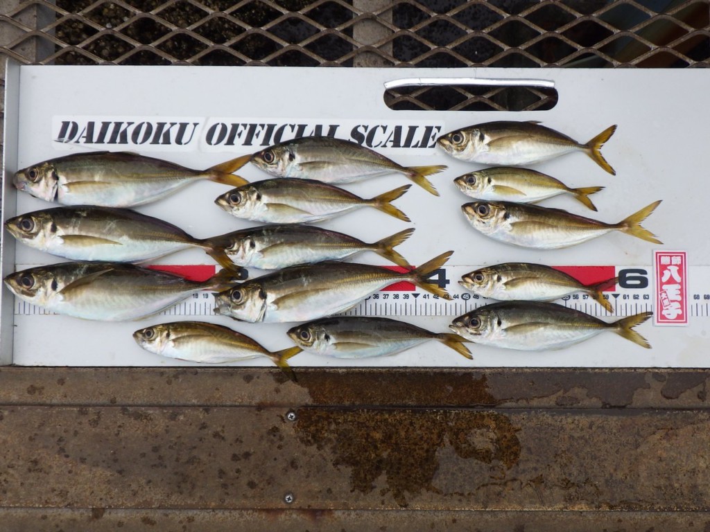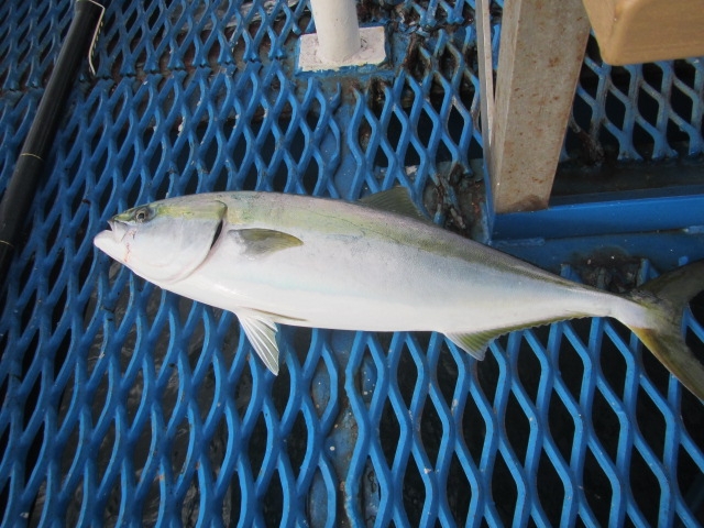 先週と変わらず、30cmほどのソーダカツオやイナダ(40cm前後)、カンパチ(35cm前後)が先端付近にてカゴ釣りで釣れています。