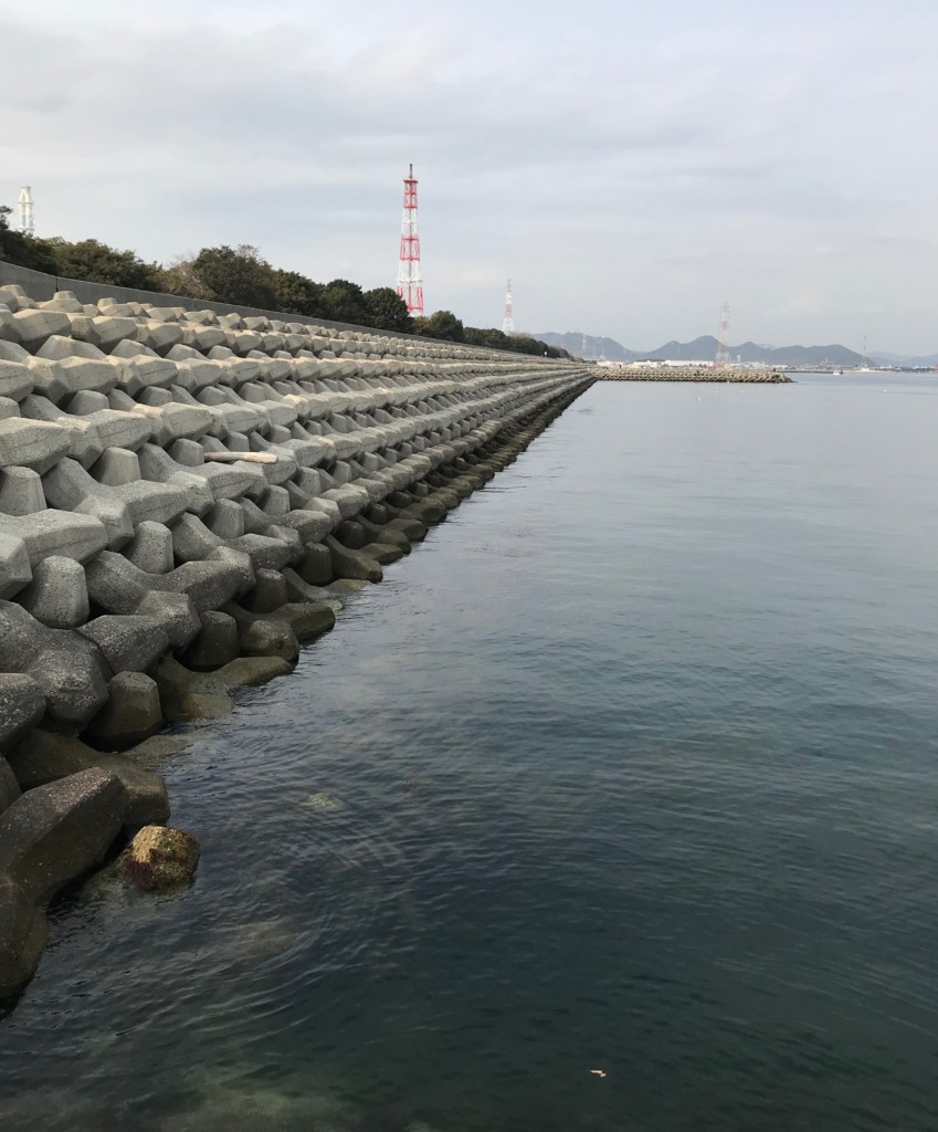 灘浜には5本の突堤が等間隔に並んでおり、テトラが積まれています。テトラの間隔は狭いですが、釣りをする際は十分注意してください。
