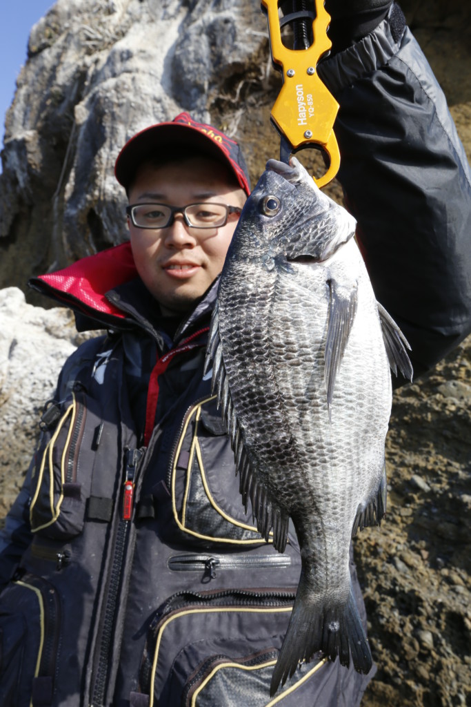 ど、どうでしょうか、見事な釣れっぷりです。当日は大向氏がクロダイ35~45cm15尾と大釣りの1日となりました。このクロダイ釣りは5月頃まで楽しめます。