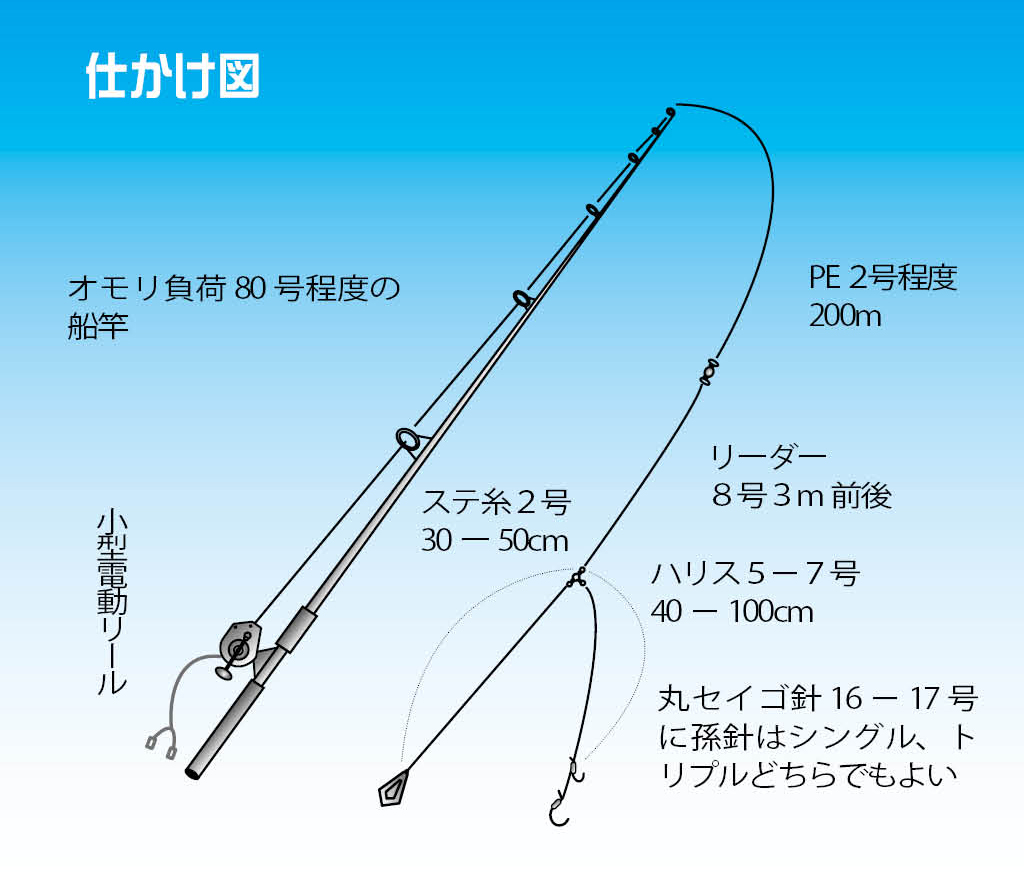 この釣りは、意外にもライトタックルで楽しむことができます。