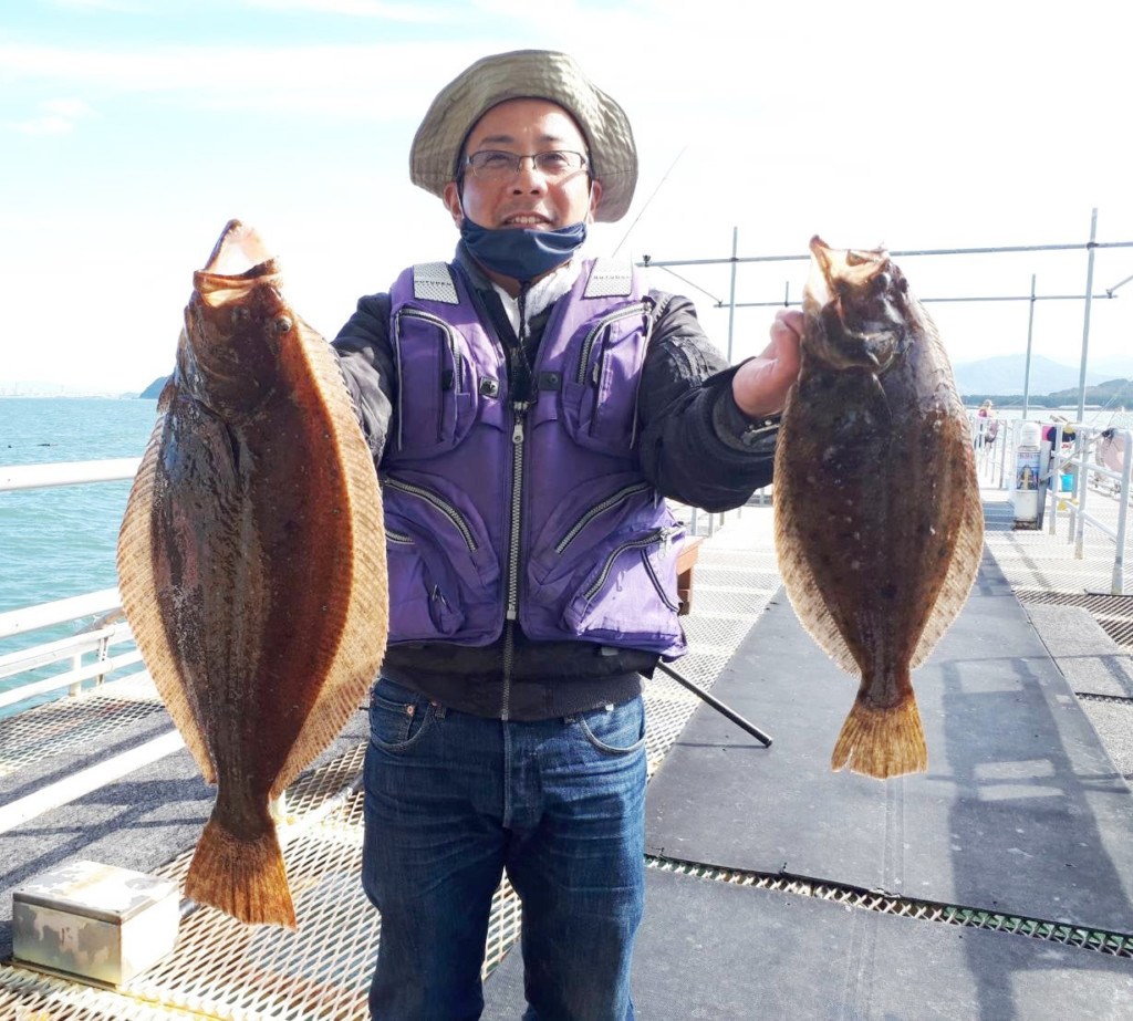 織田ヶ浜でカワハギ22cm頭に10尾とカレイ30cm頭に4ハイ。