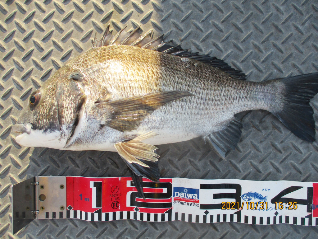 アジ15~22cm95尾とマダイ14~36㎝8尾にヒラメ40~50㎝3尾とチヌ30~36cm3尾。