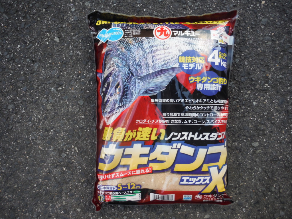 ダンゴはマルキューのウキダンゴXに、細びきさなぎ、活さなぎミンチ激荒、アミエビと、調整用にチヌパワーを使った。