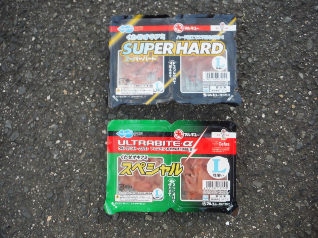 サシエはくわせオキアミスペシャルとスーパーハードに、ネリエのエサ持ちイエローと、コーンを用意。