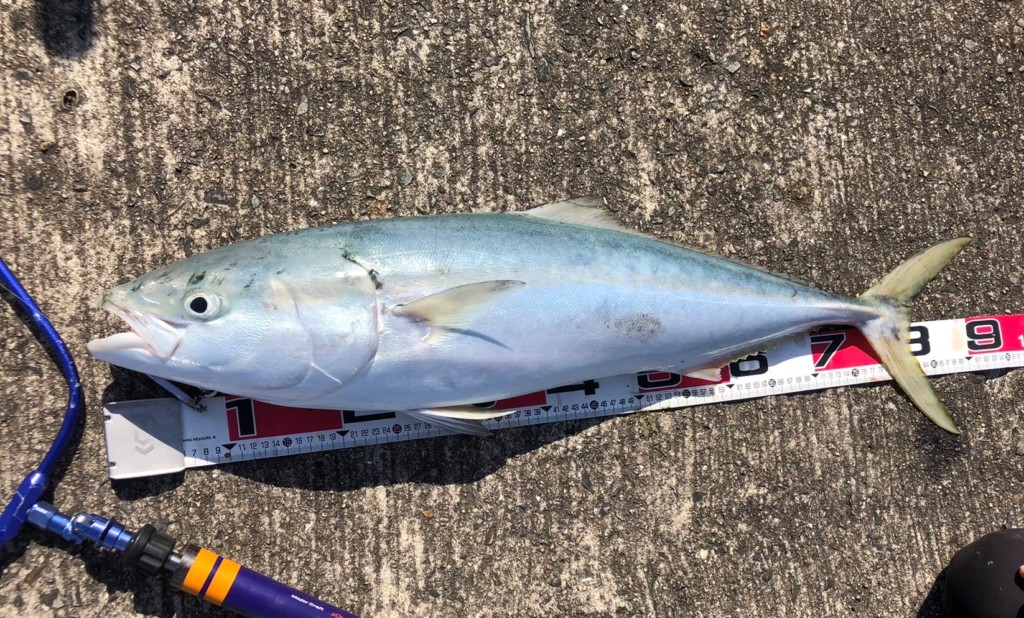 ノマセ釣りでも釣れています。今年はエサのアジの回遊が少ないのですが、朝イチにサビキで小アジを確保してください。