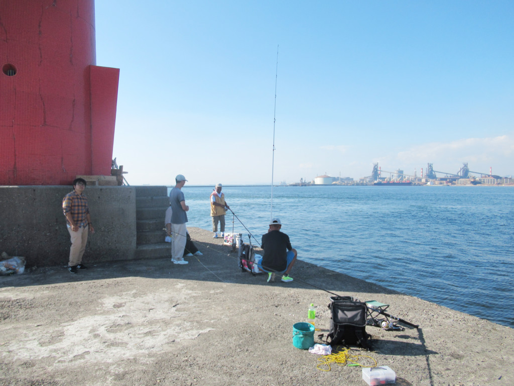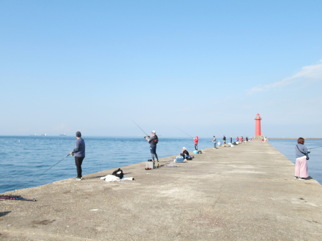 カレイは大波止に下りた内向きの台船の前がポイントなので、広く空いた所で、早速、カレイ仕かけで軽くキャスト。