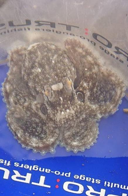 播磨新島でイイダコ100g頭に2ハイ。