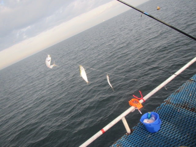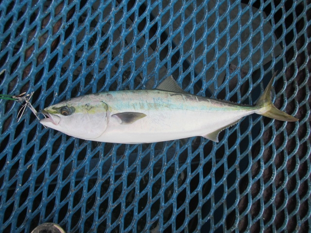 先週に引き続き、ソーダカツオ(35cm前後位)、イナダ(40cm前後)、スマカツオ(40cm前後)が先端付近にてカゴ釣りで釣れていますが、そろそろシーズン終盤のようです。